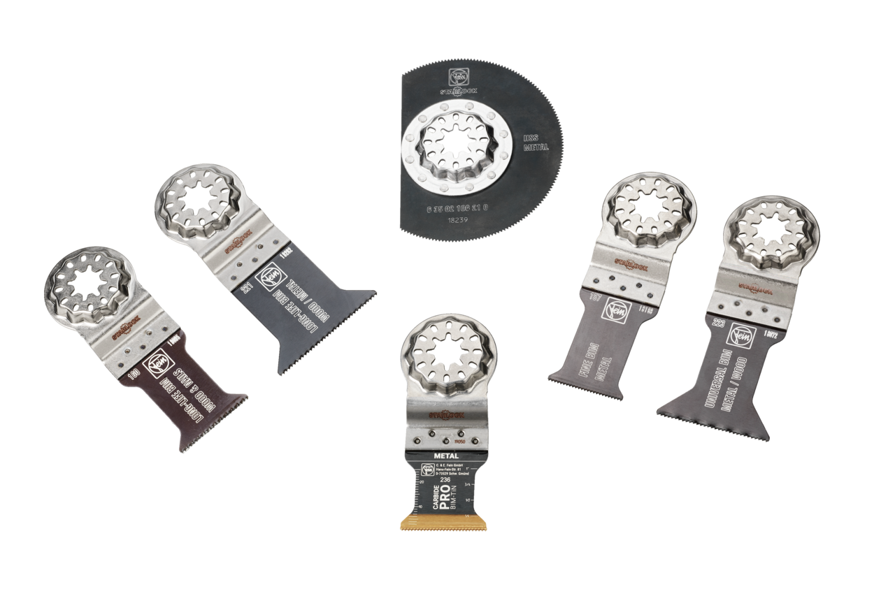 6 testere bıçağı, özellikle sertleştirilmiş ve sertleştirilmemiş metalleri işlemek için. Tüm FEIN çok fonksiyonlu aletlere ve piyasada yaygın olarak bulunan Starlock yuvalı diğer tüm çok fonksiyonlu aletlere uygundur. Tek tek satın almaya göre cazip fiyat avantajlı set halinde. İçerik: 1 E-Cut CarbidePRO testere bıçağı (40 x 32 mm), 1’er adet E-Cut Long-Life testere bıçağı (50 x 35 mm ve 50 x 50 mm), 1 E-Cut Universal testere bıçağı (55 x 44 mm), 1 E-Cut Fine testere bıçağı (50 x 30 mm), 1 tam HSS segmentli testere bıçağı (Ø 85 mm).