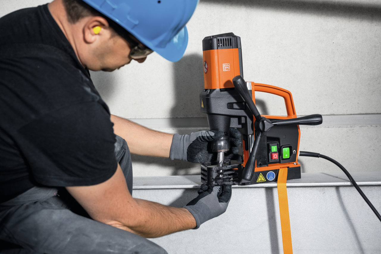 Şantiyede çekirdek delme için küçük ve son derece hafif 1 vitesli Endurance manyetik çekirdek delme makinesi.