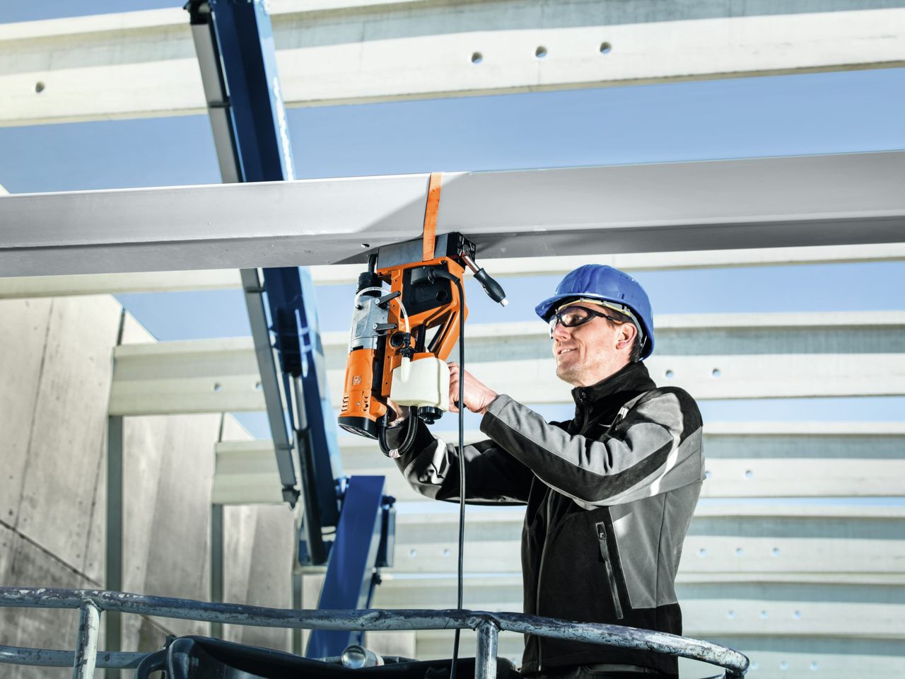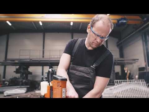 Sağ/sol dönüşlü, daimi mıknatıslı, şantiyede son derece emniyetli ve esnek çalışma için yüksek işlevselliğe sahip, küçük ve yüksek stroklu, 1 vitesli üniversal manyetik matkabı.