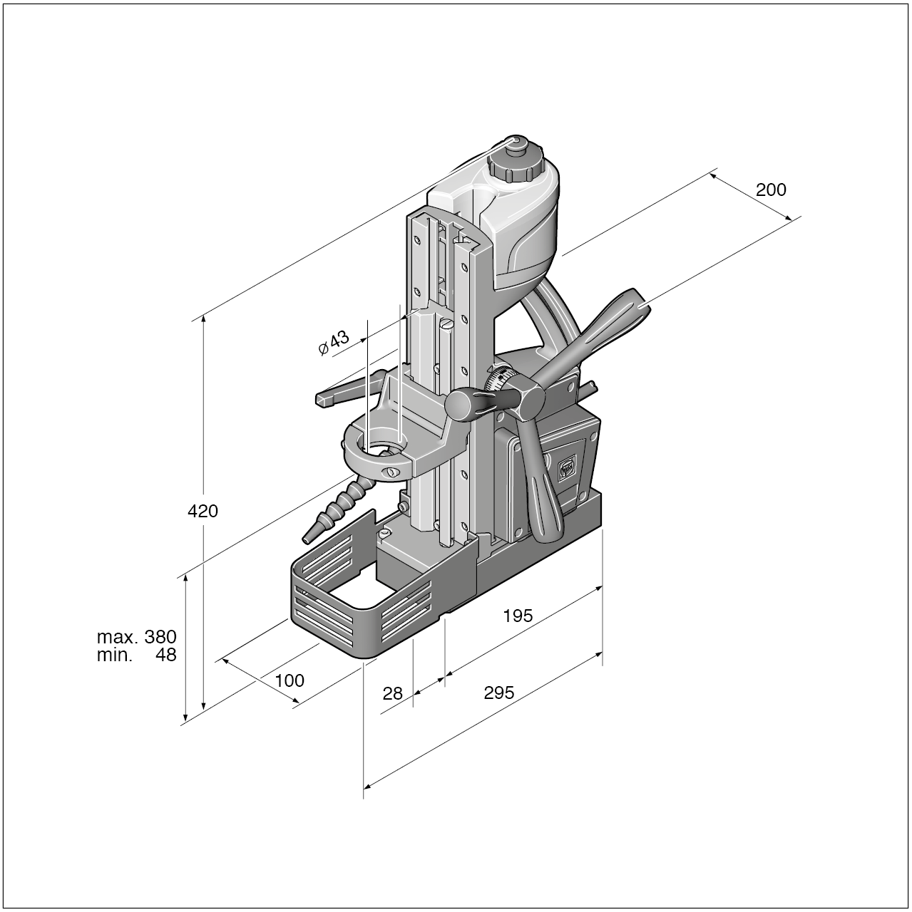 - Delme, diş açma, raybalama ve havşa açma gibi üniversal kullanıma yönelik hafif, kompakt manyetik matkap sehpası.